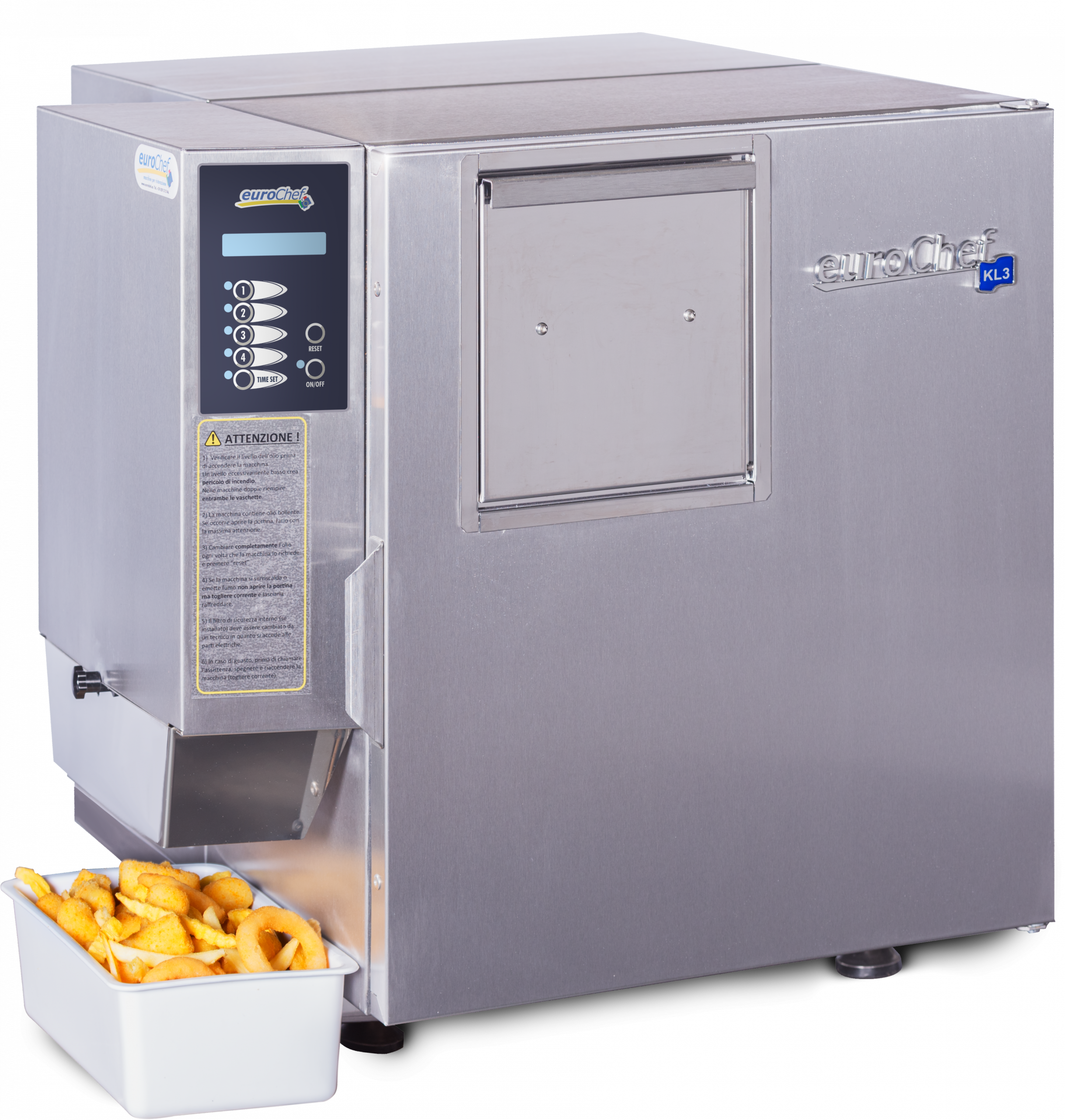 Además, con las freidoras sin humos Eurochef se puede atender a los clientes con personal básicamente instruido, sin necesidad de costoso personal de cocina , pudiendo dar servicio a cualquier hora del dia.